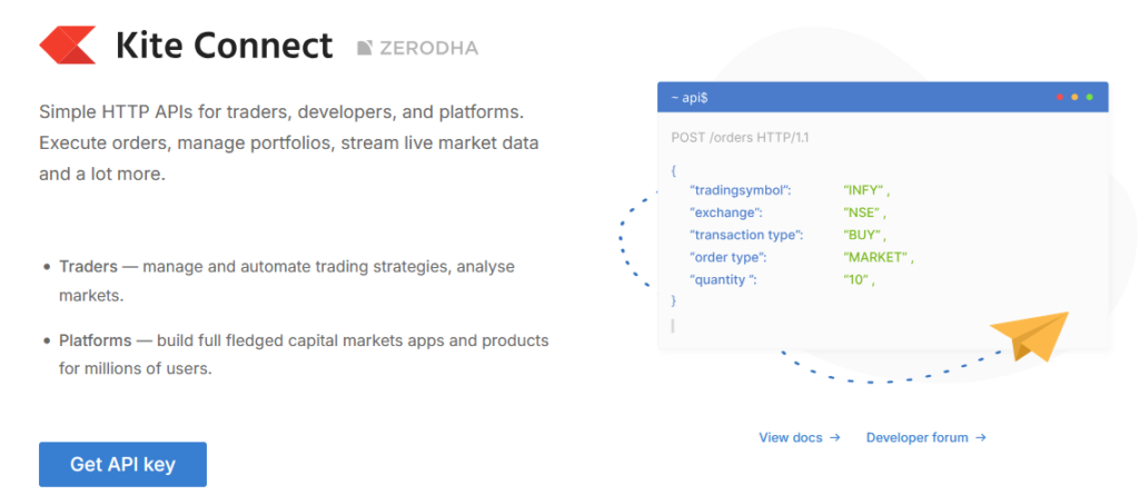 Advanced API Bridge that can be integrated with any Trading Account. Currently we support Zerodha, AngelOne, AliceBlue, FlatTrade & many more coming soon.